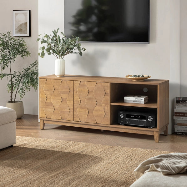 60" Modern TV Stand with Geometric Doors and Adjustable Storage